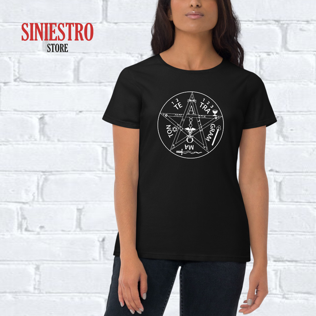 Camiseta moderna, femenina, duradera y confeccionada 100% de algodón "Tetragrammaton" de la Colección Alquimia